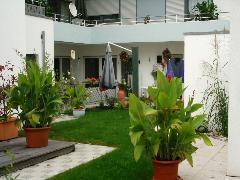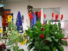 unsere Terrasse grün mit Pflanzen und richtig Gemütlich