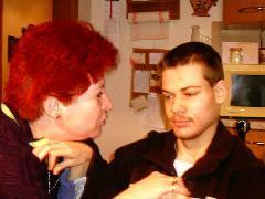 unser Sohn Matthias ist schwerst Behindert und geht in eine Behinderten Werkstatt er schmust sehr gerne mit seiner Mutter.